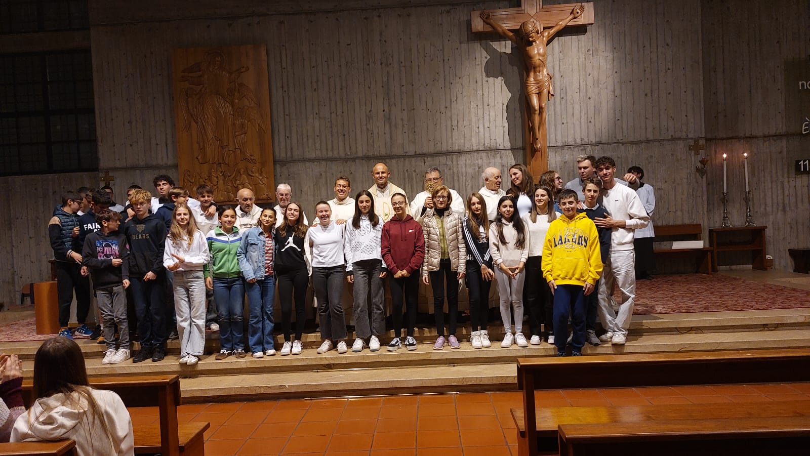 In apertura della celebrazione, i ragazzi della II media hanno attraversato la navata in processione portando la reliquia, ricevuta dalla comunità lo scorso 25 aprile ad Assisi. Un gesto carico di emozione, culminato con la consegna al parroco don Alberto, alla presenza di tutta la comunità riunita.