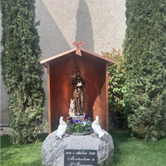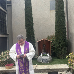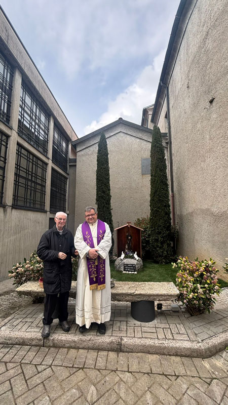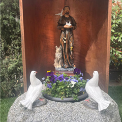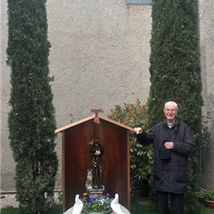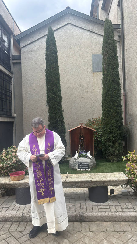 Due cipressi, due colombi in gesso appoggiati su un masso un tempo usato dai contadini per sminuzzare le pannocchie di granoturco, una panchina ricavata dal vecchio gradino in pietra posto davanti all'entrata della chiesa. Questo era lo spazio, anonimo, situato all'esterno sul lato opposto al gruppo scultoreo della Madonna di Fatima: un sito, visto nella sua globalità, che chiedeva di essere valorizzato.